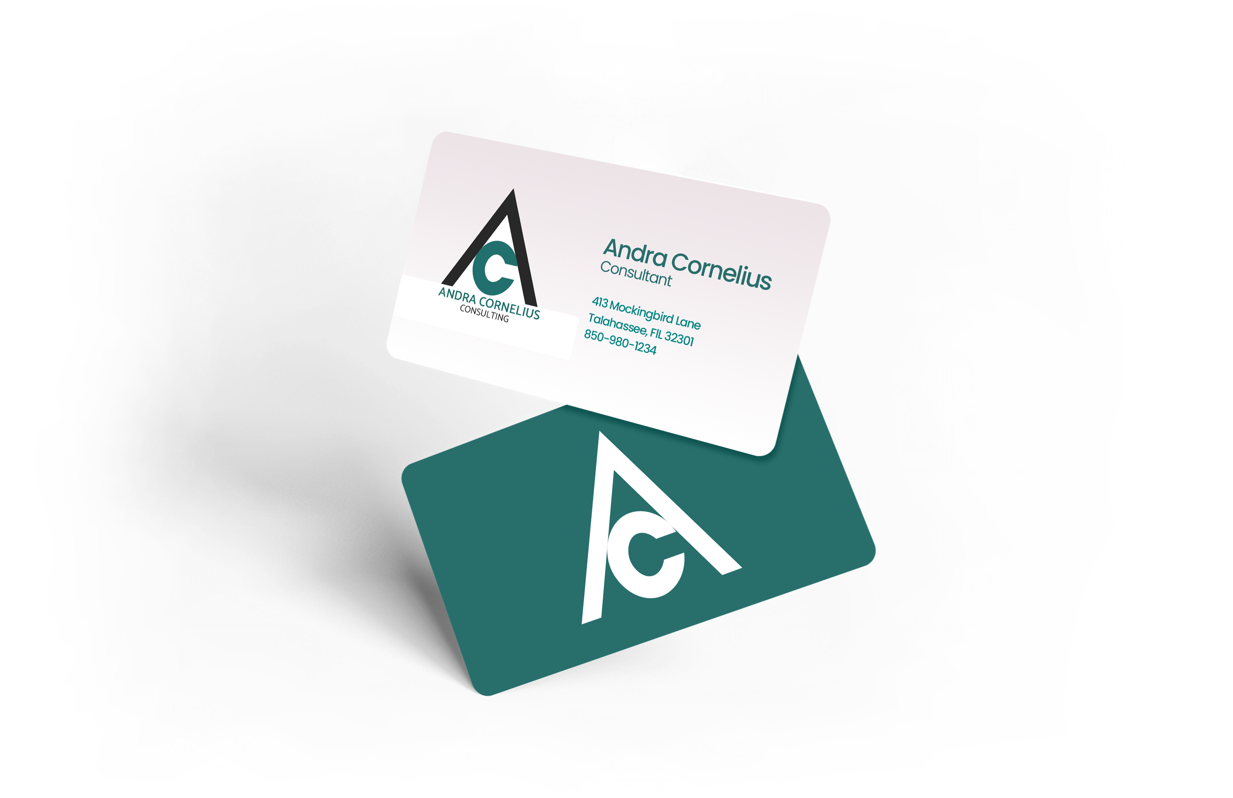 Created mock-ups of various items, providing the Andra Cornelius Consulting with visual representations of their logo in real-world scenarios, allowing them to envision its impact across different mediums.