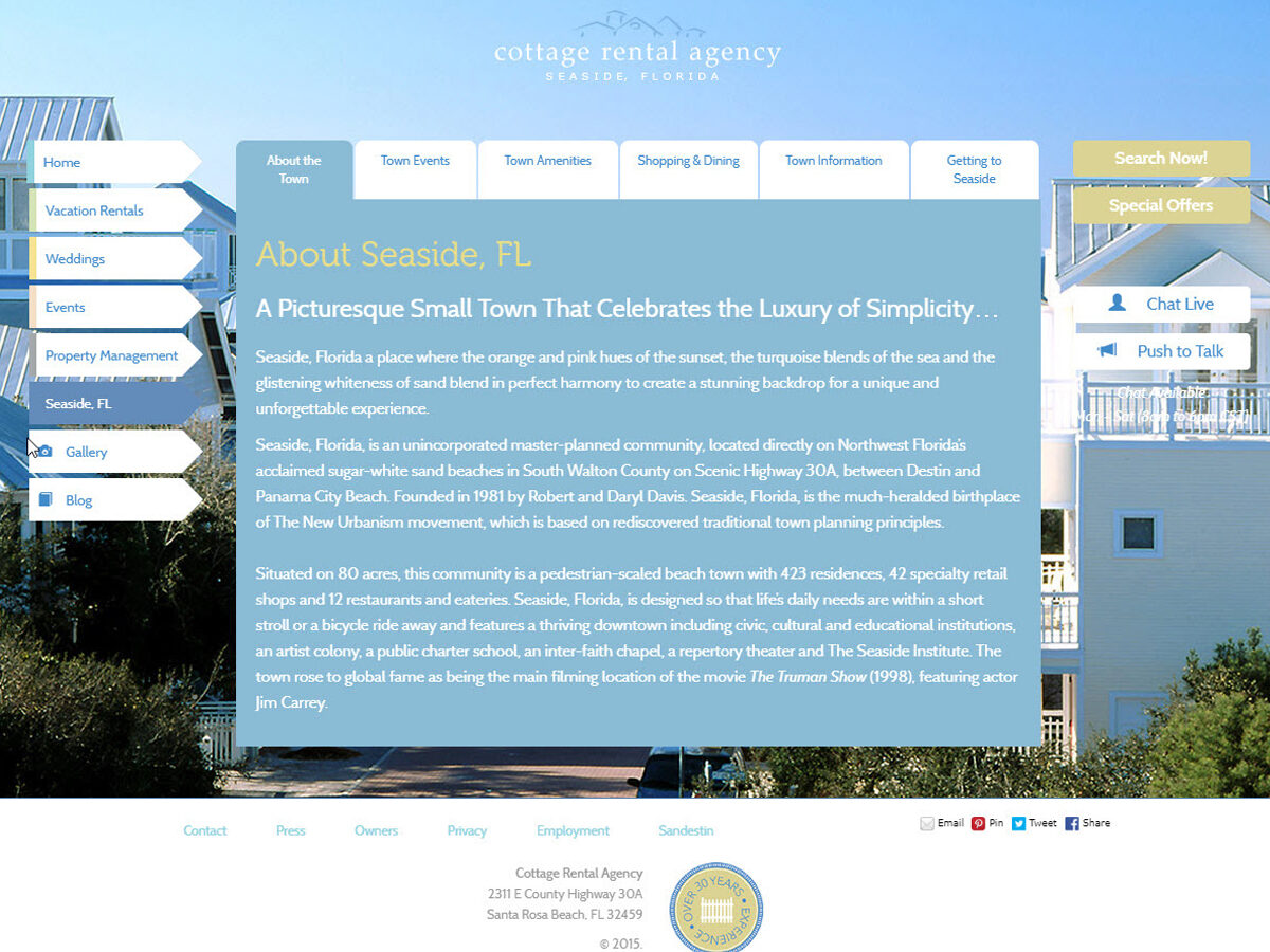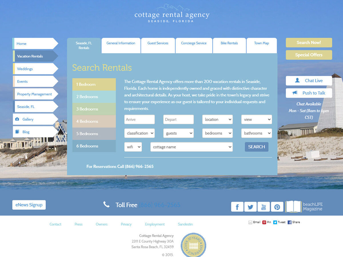 Website design and development for the original and longest-established property management company along Highway 30A.