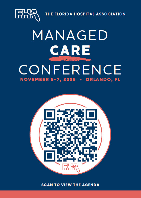 Podium signage for the 2025 FHA Managed Care Conference event.
